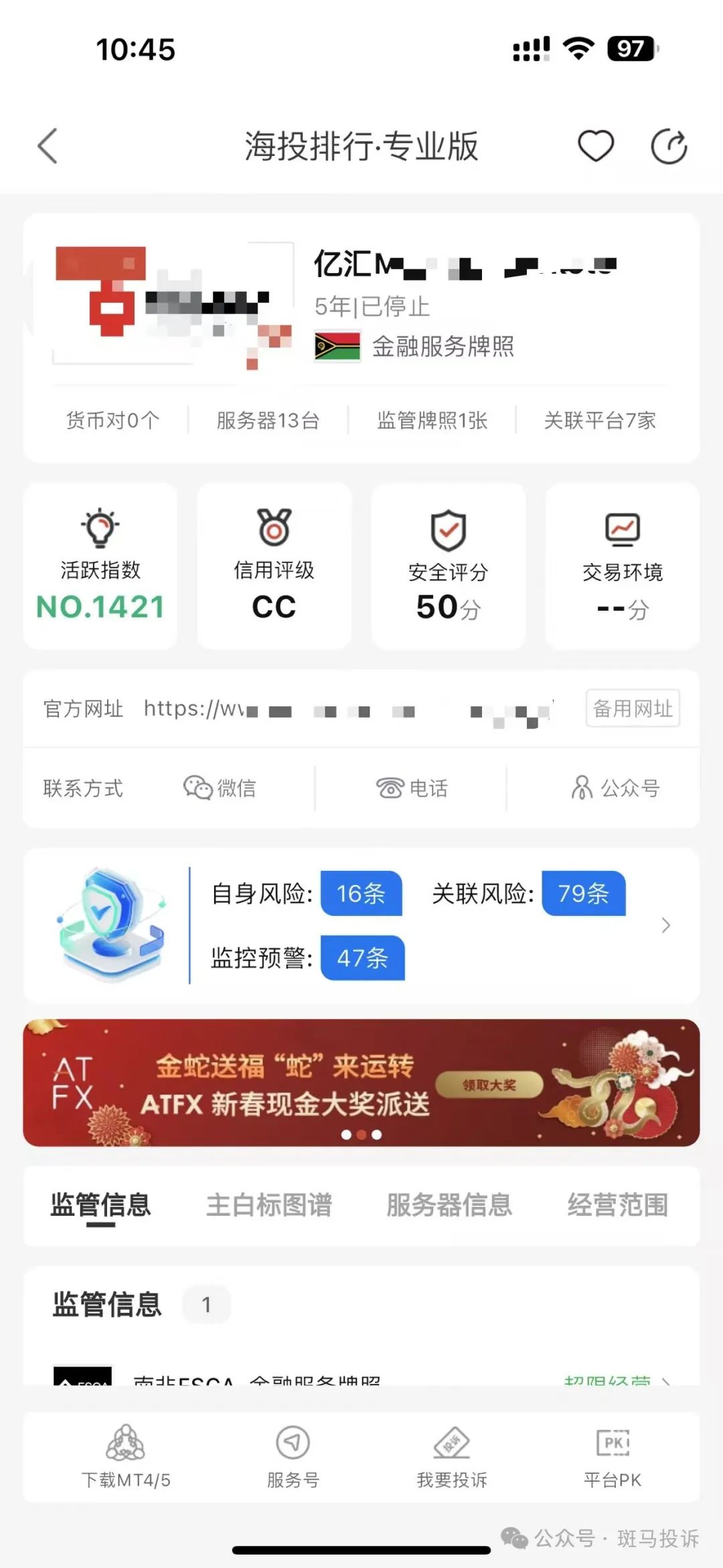 对此投诉,斑马第一时间将投诉信息反馈到了亿汇平台,截至发稿时,我们尚未收到平台的正式回应。我们在此呼吁亿汇平台积极回应用户的关切,并对相关情况进行说明。我们也欢迎亿汇平台与我们联系,提供其对该事件的解释和证据。我们了解到,据斑马投诉平台统计,类似关于亿汇平台的投诉还有17起.