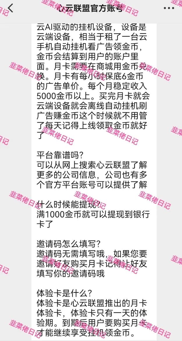 想要赚钱就得购买平台的心云自动型(月卡),以下简称月卡,购买月卡之后不需要你看视频就能获得金币,所以宣传的刷视频赚钱,与视频完全无关,全靠购买他的月卡才能赚钱,并且本人亲自测试,没有购买月卡刷视频一个金币都不能获得。